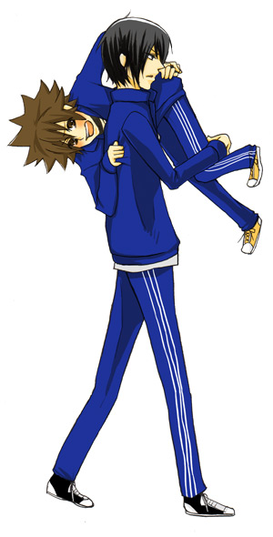 「綱吉、さっき転んでたでしょ。大丈夫なの?」 「えっ?ぅえ!?だっだだだ大丈夫です!」(ぎゃあぁっヒバリさんっ見られてた!?) 「おいで、診てあげるから。」 「わゎあっ大丈夫です!ヒバリさんっおろして…!///」 な、図です。体育祭とか。 どうやら私は雲雀さんがツナたんを担いでるのが好きなようです。 拍手のほうでもやってますが。 あと今回は雲雀さんにジャージを着てほしかった。